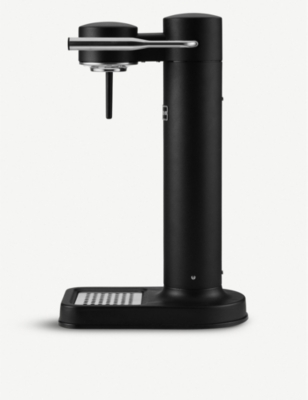 Designed in sweden this sleek and slim carbonator produces fizzy soda water via a simple lever mechanism.
